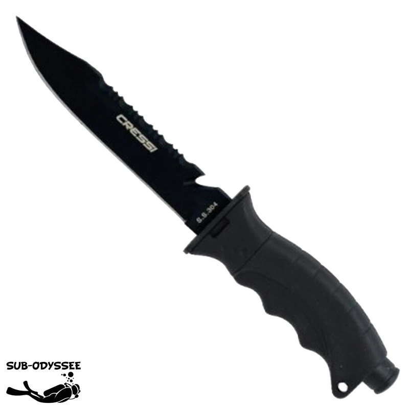– La lame en acier inox possède un cĂ´tĂ© au fil droit tandis que l’autre est crantĂ© en scie sur toute la longueur.
