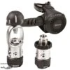 Il est composĂ© d’un harnais en toile rĂ©glable , d’une bouteille de 2 litres, d’un dĂ©tendeur Ă deux Ă©tages & d’un manomètre de contrĂ´le.