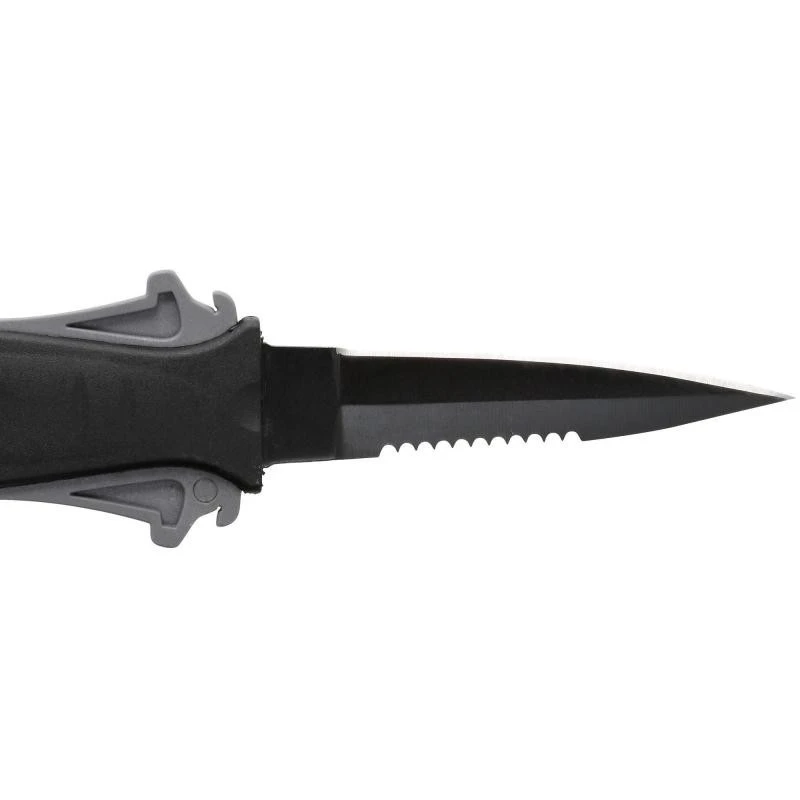 Couteau de chasse sous marine Omer LASER. Lame en acier Inox AISI 304 de 8cm revĂŞtue de teflon noir.