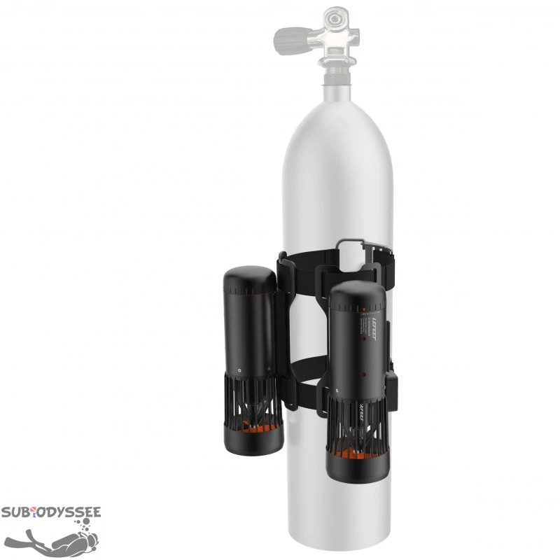 Support de sangle pour mettre deux scooters Lefeet S1 sur une bouteille de plongĂ©e La combinaison d’un propulseur & d’une bouteille fournit une puissance supplĂ©mentaire pour les plongeurs afin de parcourir les mers comme ils le souhaitent.